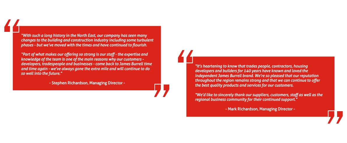 Established in Gateshead in 1877 and still owned today by the Richardson family, James Burrell builders merchant continues to provide a comprehensive experience for customers - both collect and contract.